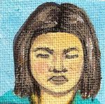 2008Tibetan portrait 3, miniature 4x4 cm (1,6'x1,6'), acrylic on canvasboard. Handmade in Holland. * Tibetaans portret 3. Acryl op canvasboard, 4x4cm.